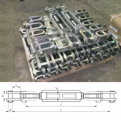 Такелажное изделие для регулировки натяжения и изменения длины растяжек, тросов, цепей и строп.